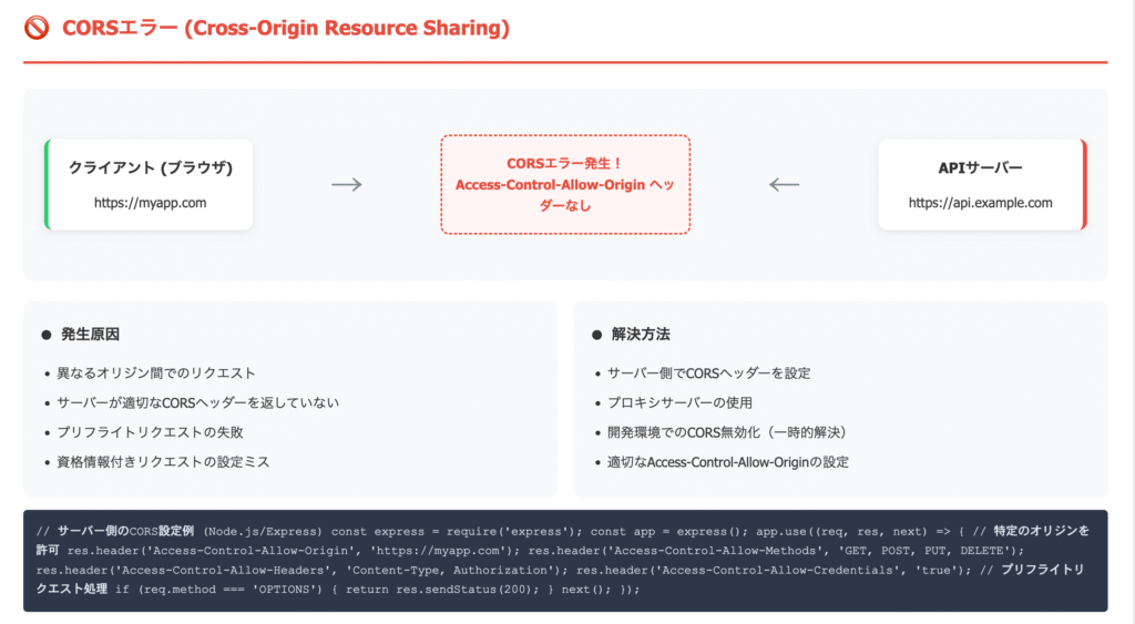 - CORSエラーはサーバー側の設定で回避できる ( )