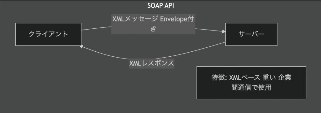- SOAP API: XMLベースのプロトコル(現在はあまり使われない)
