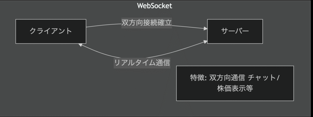 - WebSocket: 双方向リアルタイム通信